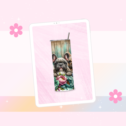 Trio Frenchie puppies drinks tumbler
