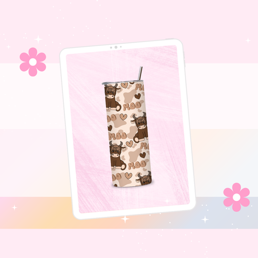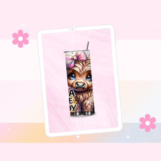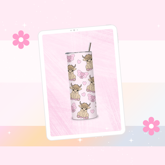 Pink highland cow print drinks tumbler