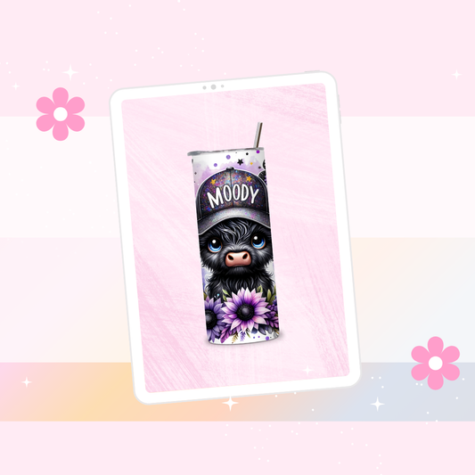 Moody Highland cow drinks tumbler