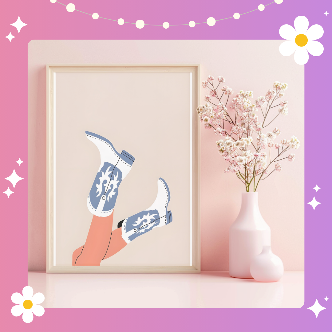 Blue and white boots Art Print