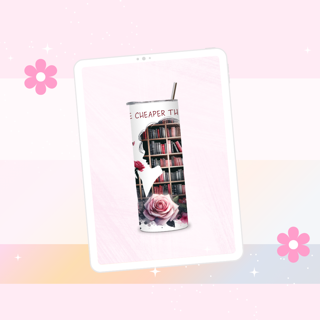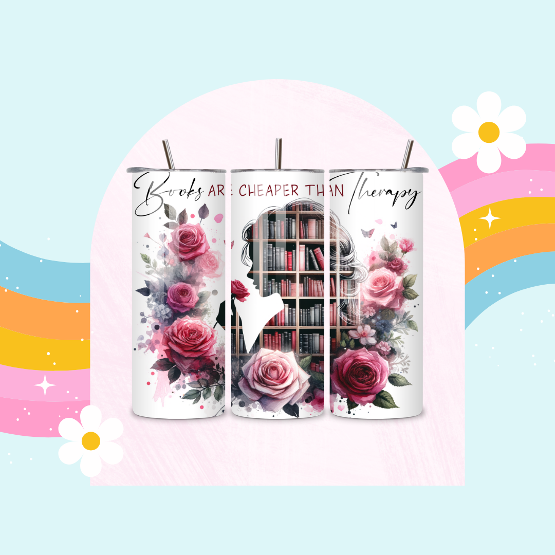 Skip the session and dive into your next book instead! This tumbler features the clever and heartfelt “Books Are Cheaper Than Therapy” design—a must-have for anyone who knows the healing power of a great story.