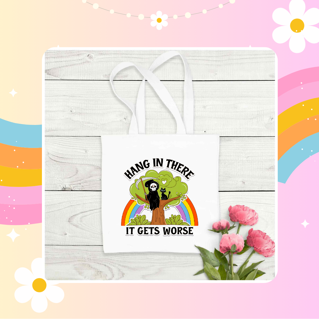 Hang in there it gets worse tote bag