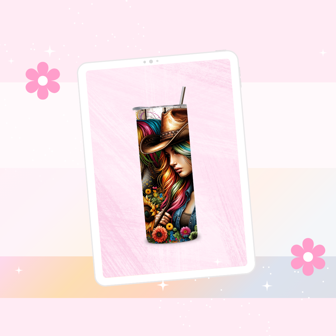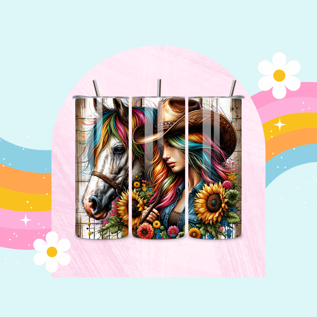 Cowgirl and horse drinks tumbler