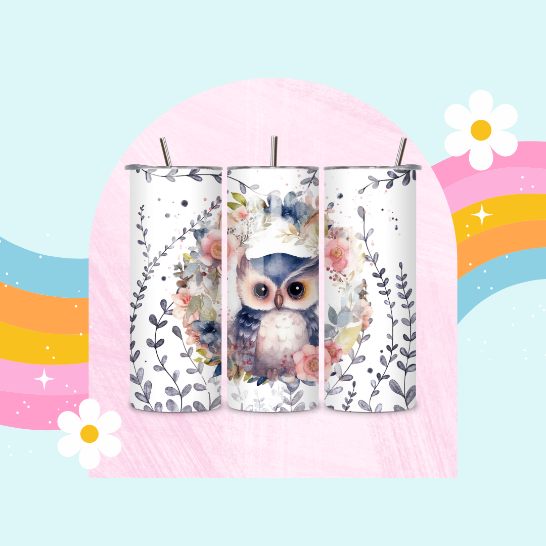 Owl drinks tumbler