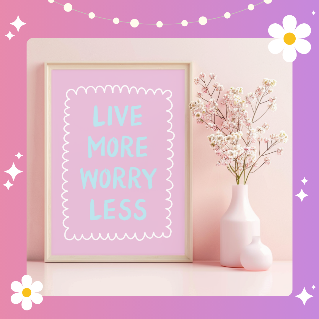 Live more worry less Art Print