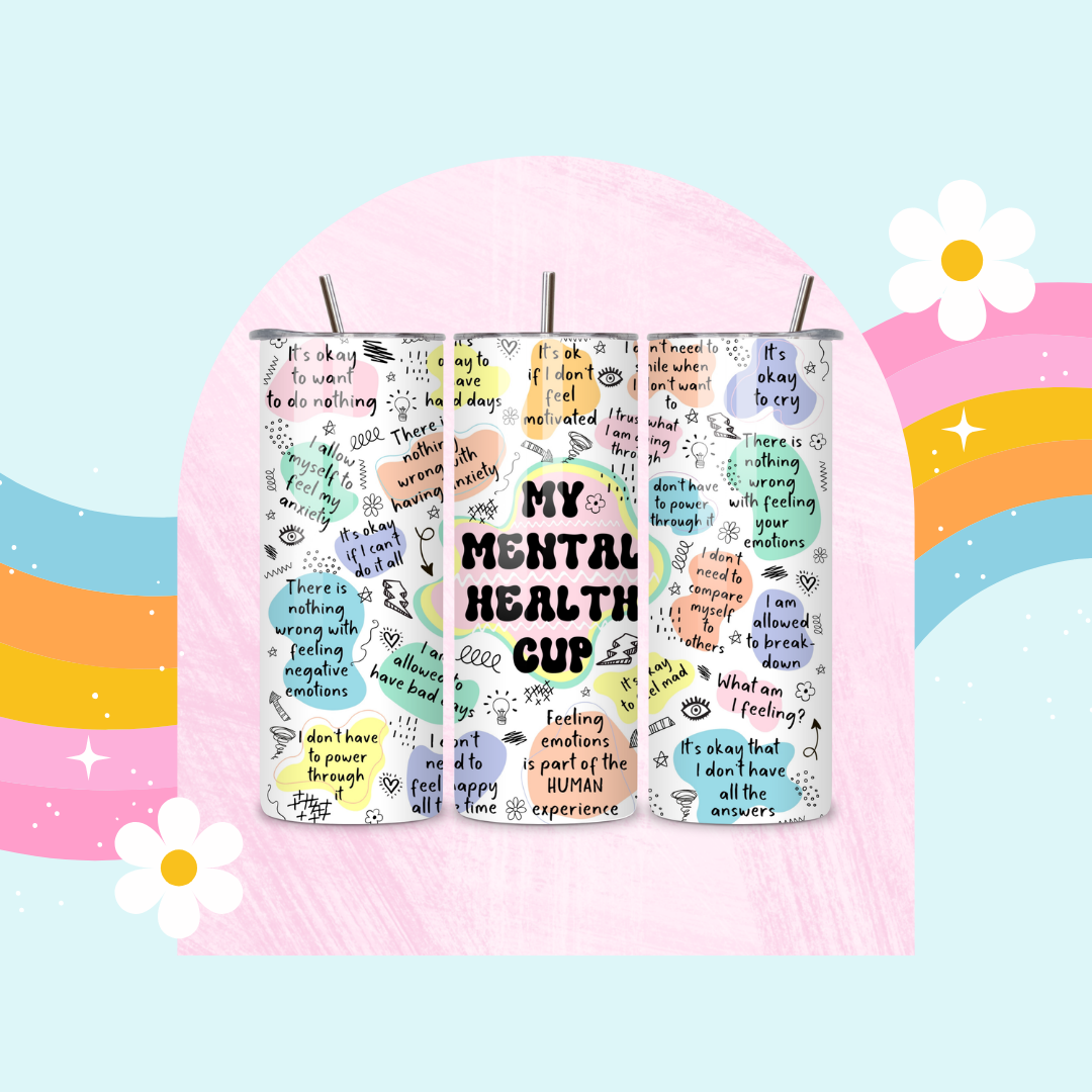 Whether you're at work, running errands, or just trying to get through the day, this tumbler is a gentle reminder that your mental health matters. Featuring a calming "My Mental Health" design, it's made for anyone who’s learning to put themselves first—and unapologetically so.