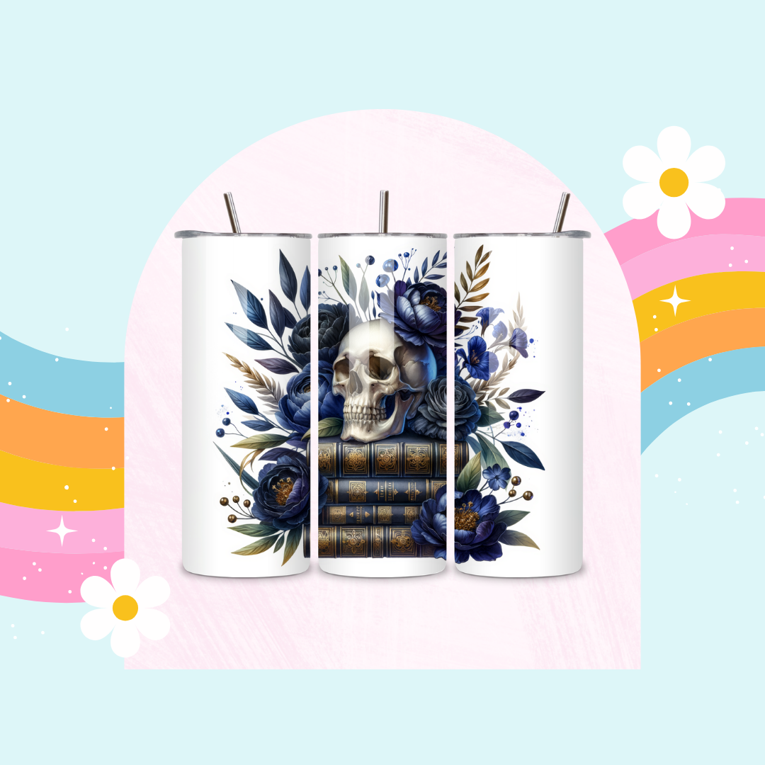 Skull Book Stack Metal Tumbler – 600ml (20 oz)