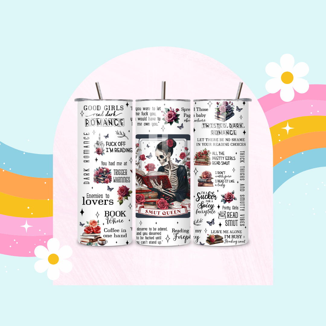 For the unapologetic lover of all things steamy, this tumbler proudly declares your title as the ultimate Smut Queen. Whether you’re diving into your favorite spicy romance or savoring a hot drink, this tumbler keeps you hydrated and ready to conquer your next sultry chapter.