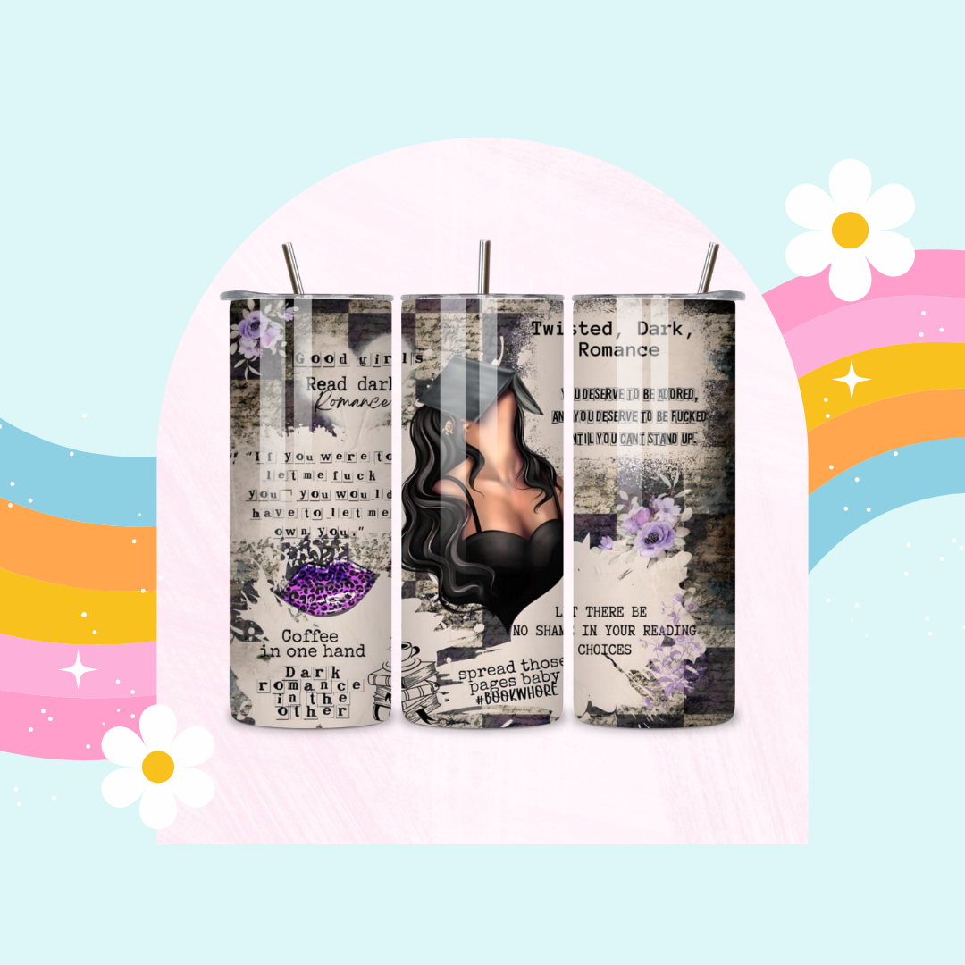 Step into the shadows with this edgy and irresistible “Twisted Dark Romance” tumbler—crafted for readers who crave complicated lovers, dangerous secrets, and deliciously dark plots. If your bookshelf is filled with obsession, betrayal, and brooding antiheroes, this is your perfect reading companion.